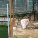 The pelican at Wakayama Castle zoo is about to bite a pole nearby. I consider myself of rather good at imagining things, but as far as this action of him is concerned, I have entirely no idea what he is at to.