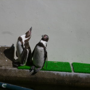 和歌山城動物園の歌好きのペンギンです。今日は2人の音楽に関する意見が合わなかった様です。