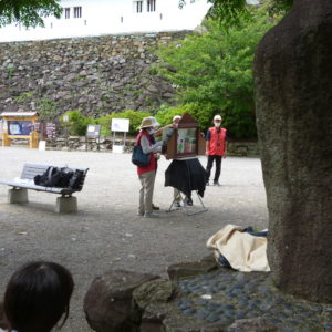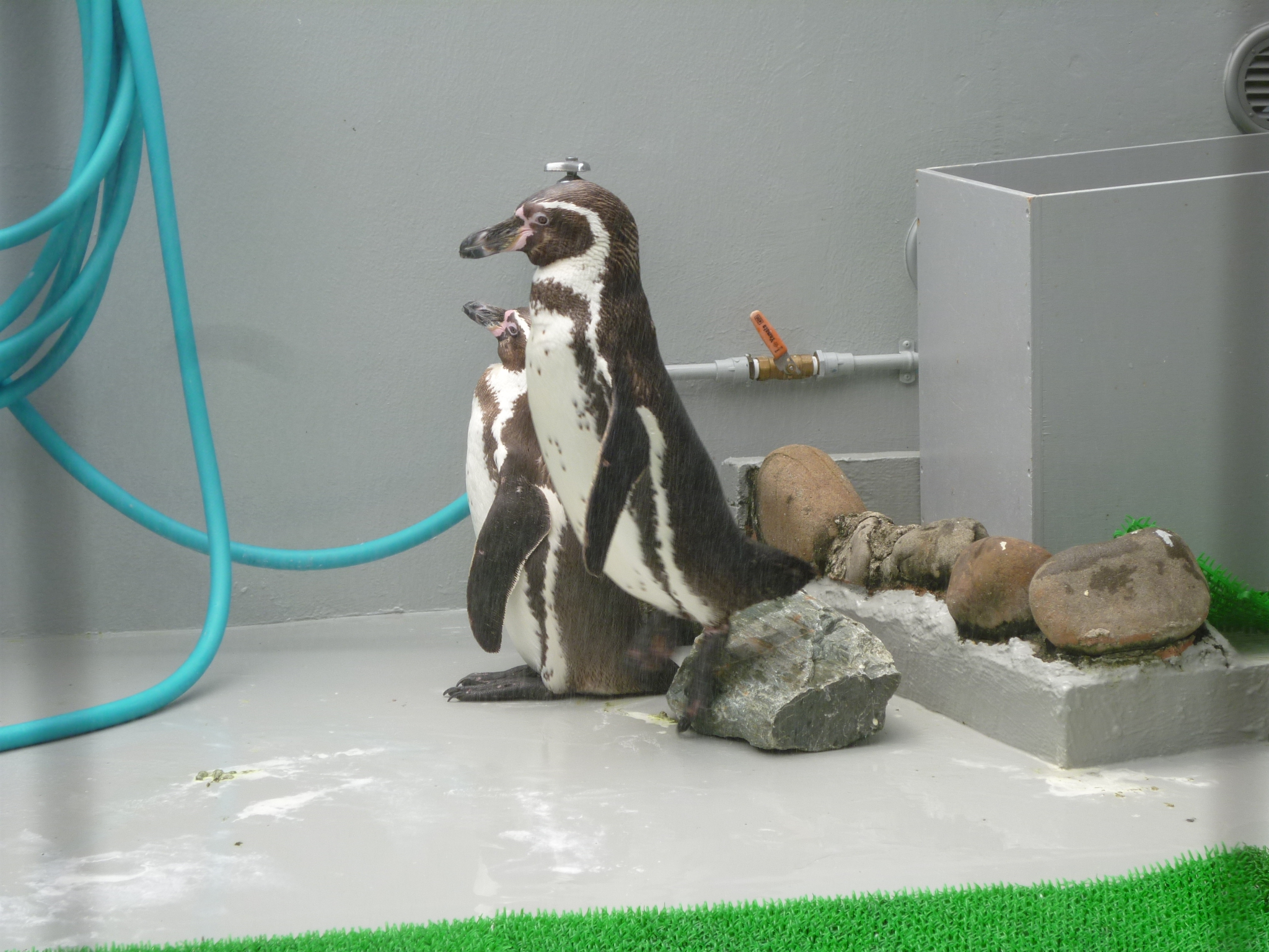 They are penguins at Wakayama Castle zoo, who do like singing. On this day, a penguin was jumping from a podium, and I could fortunately succeeded to catch it.