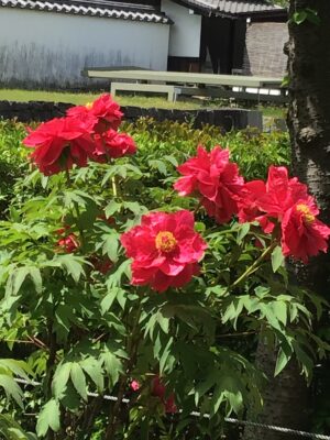 牡丹園では、いく種か花が咲いています。とりどりに色鮮やかです。