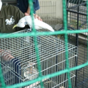 Is a horse at Wakayama Castle zoo wrestling with a keeper? No, it is not. The keeper is putting out dirt which accumulated in the hole of the horse’s hoofs. This is being done almost every evening, according to him.